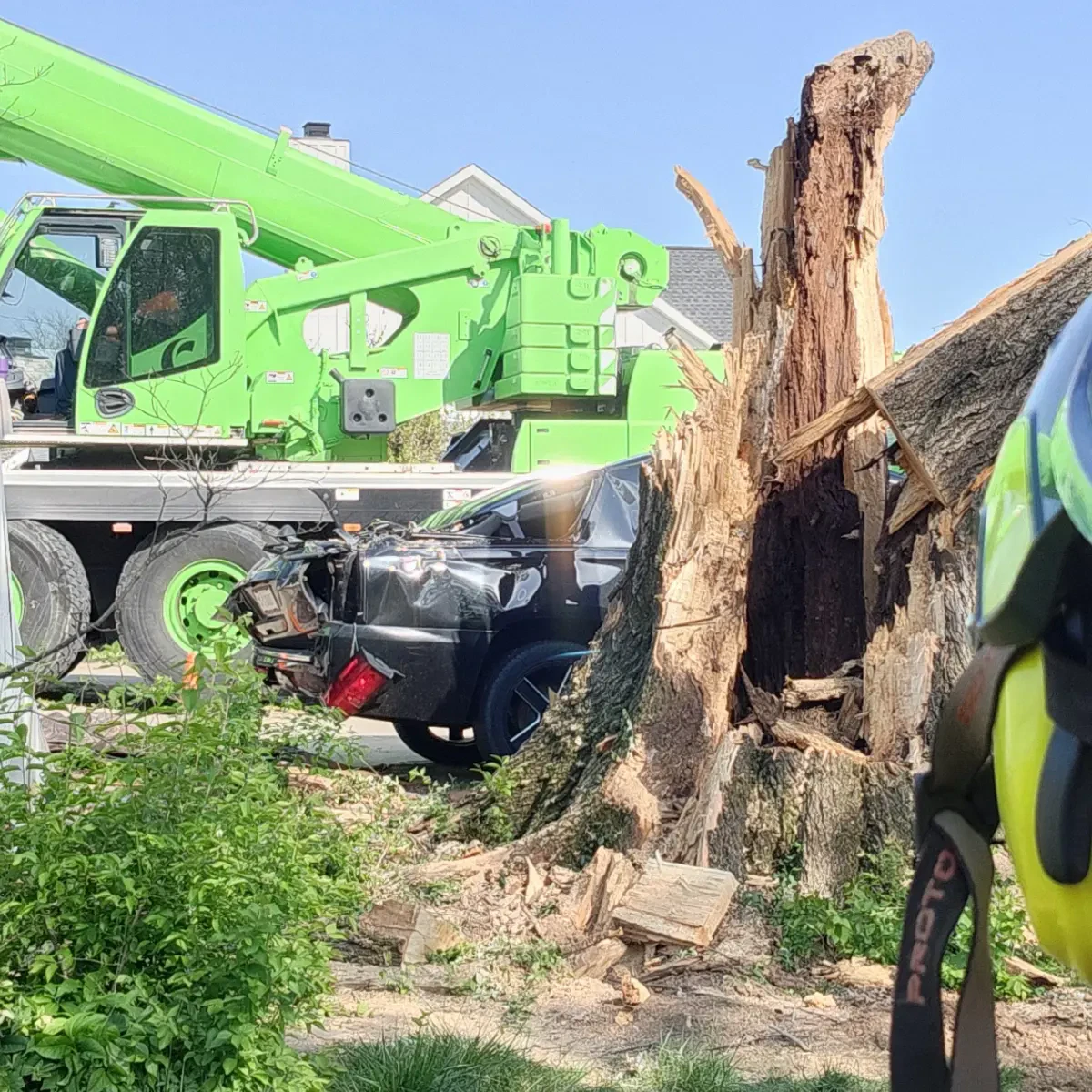 - Crane-assisted removal for hazardous and complex tree jobs